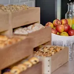 W obiekcie noclegowym oferuje się również bezpłatne wegetariańskie śniadanie. Jest tam również bar kawowy. W 6 min spacerem można dojść do restauracji Delhi 6 lub odwiedzić restaurację Dai An, znajdującą się w odległości 7-minutowego spaceru od obiektu.